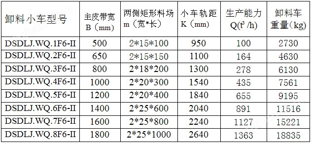 注:表中生產(chǎn)能力是按主皮帶帶速1.0m/s,物料密度1.0t/m³時計算的。