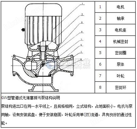 一、GW型管道式無堵塞排污泵產(chǎn)品介紹: