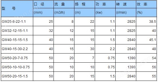 四、GW型管道式無堵塞排污泵使用條件: