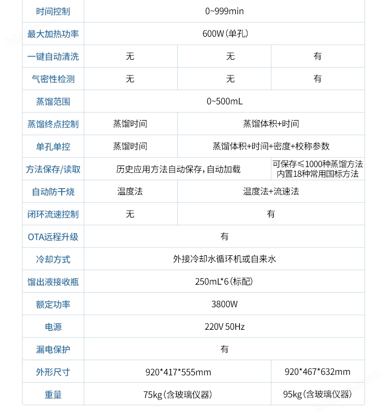 2、采用7寸液晶觸摸屏控制,蒸餾方法可設置,自動保存,下次開機可直接使用;系統(tǒng)自帶校正蒸餾體積(重量)功能。