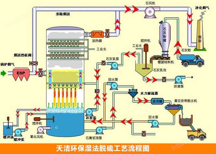 鍋爐煙氣脫硫,是指將煤中的硫元素用鈣基等方法固定成為固體防止燃燒時(shí)生成SO2。通過(guò)對(duì)國(guó)內(nèi)外脫硫技術(shù)以及國(guó)內(nèi)電力行業(yè)引進(jìn)脫硫工藝試點(diǎn)廠情況的分析研究,目前脫硫方法一般可劃分為燃燒前脫硫、燃燒中脫硫和燃燒后脫硫等3類(lèi)。其中燃燒后脫硫,又稱(chēng)煙氣脫硫(簡(jiǎn)稱(chēng)FGD),在FGD技術(shù)中,按脫硫劑的種類(lèi)劃分,可分為以下五種方法:以CaCO3(石灰石)為基礎(chǔ)的鈣法,以MgO為基礎(chǔ)的鎂法,以Na2SO3為基礎(chǔ)的鈉法,以NH3為基礎(chǔ)的氨法,以有機(jī)堿為基礎(chǔ)的有機(jī)堿法。世界上普遍使用的商業(yè)化技術(shù)是鈣法,所占比例在90%以上。![]() |