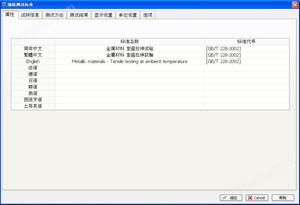 1.測試標(biāo)準(zhǔn)模塊化功能:提供使用者設(shè)定所需應(yīng)用的測試設(shè)定,范圍涵蓋GB、ASTM、DIN、JIS、BS…等測試標(biāo)準(zhǔn)規(guī)范。