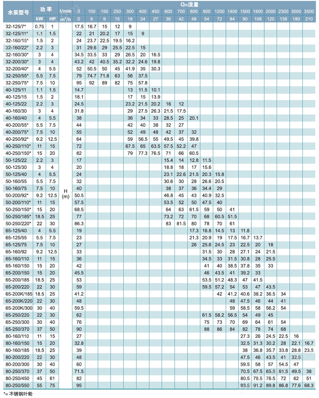 性能參數(shù)(二級(jí)、50Hz)