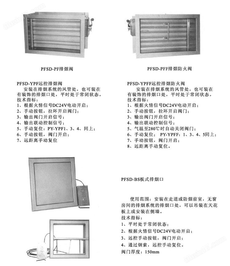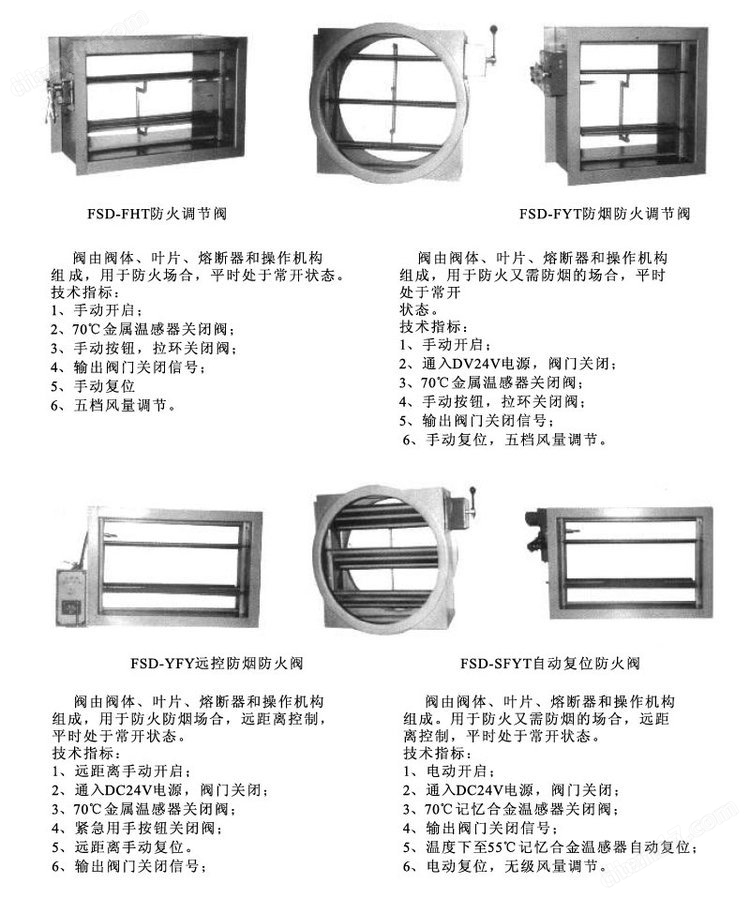 防火/排煙閥、送風口、排煙口特點:根據不同場合,執(zhí)行機構可分為手動、電動半自動、全自動及遠距離控制等。