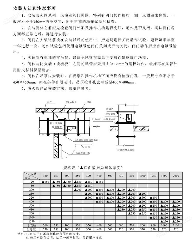 1、安裝防火閥系列,應注意閥門周圍,特別有閥門操作機構一側,應預留出位置,一般應不小于350mm的凈空間,便于定期的動作試驗和檢查。