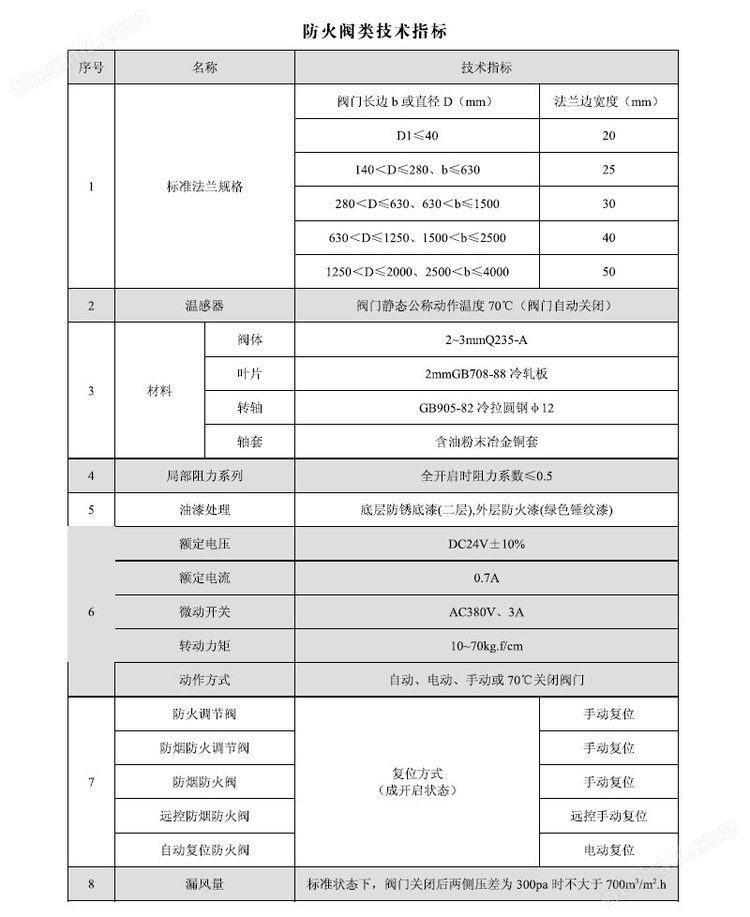 閥由閥體、葉片、熔斷器和操作機構組成,用于防火場合,平時處于常開狀態(tài)。技術指標: