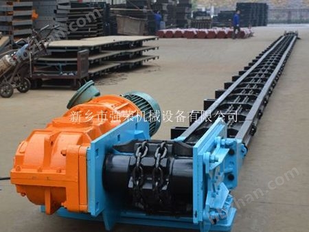 用刮板鏈牽引,在槽內(nèi)運(yùn)送散料的輸送機(jī)叫刮板輸送機(jī)。KS刮板輸送機(jī)刮板輸送機(jī)的相鄰中部槽在水平、垂直面內(nèi)可有限度折曲的叫可彎曲刮板輸送機(jī)。其中機(jī)身在工作面和運(yùn)輸巷道交匯處呈90度彎曲設(shè)置的工作面輸送機(jī)叫“拐角刮板輸送機(jī)”。 在當(dāng)前采煤工作面內(nèi),刮板輸送機(jī)的作用不僅是運(yùn)送煤和物料,而且還是采煤機(jī)的運(yùn)行軌道,因此它成為現(xiàn)代化采煤工藝中的主要設(shè)備。刮板輸送機(jī)能保持連續(xù)運(yùn)轉(zhuǎn),生產(chǎn)就能正常進(jìn)行。否則,整個采煤工作面就會呈現(xiàn)停產(chǎn)狀態(tài),使整個生產(chǎn)中斷。