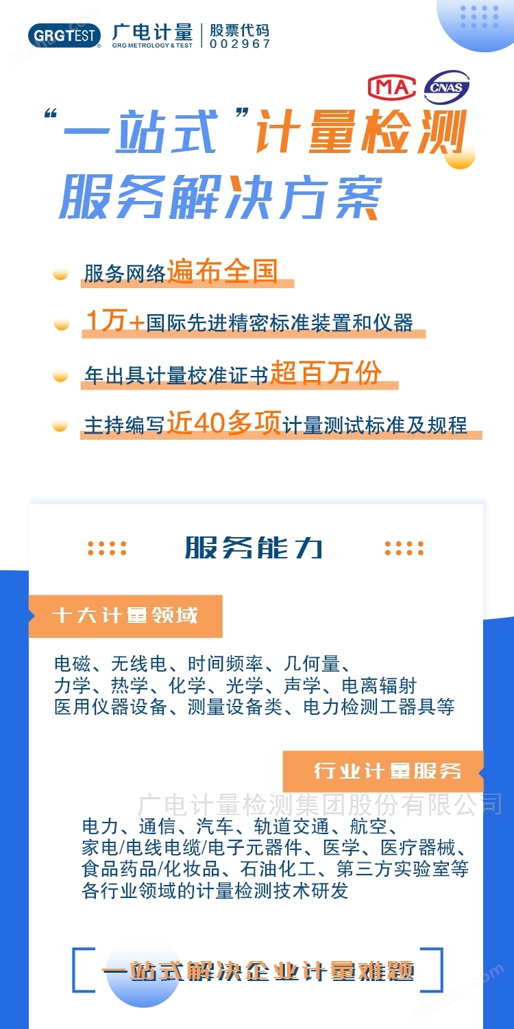 廣電計(jì)量檢測集團(tuán)股份有限公司(簡稱:廣電計(jì)量)是廣州數(shù)字科技集團(tuán)成員企業(yè),創(chuàng)立于2002年,是國內(nèi)全產(chǎn)業(yè)鏈綜合技術(shù)解決方案提供商,2019年在深交所掛牌上市。廣電計(jì)量堅(jiān)持市場化運(yùn)作,大力開展技術(shù)創(chuàng)新,持續(xù)深化全國布局,構(gòu)建了全產(chǎn)業(yè)鏈“計(jì)量檢測+科研服務(wù)+評價咨詢+設(shè)計(jì)分析+認(rèn)證服務(wù)”一站式綜合技術(shù)服務(wù)能力,其中計(jì)量校準(zhǔn)、可靠性與環(huán)境工程、電磁兼容檢測業(yè)務(wù)的經(jīng)營規(guī)模和服務(wù)能力。
