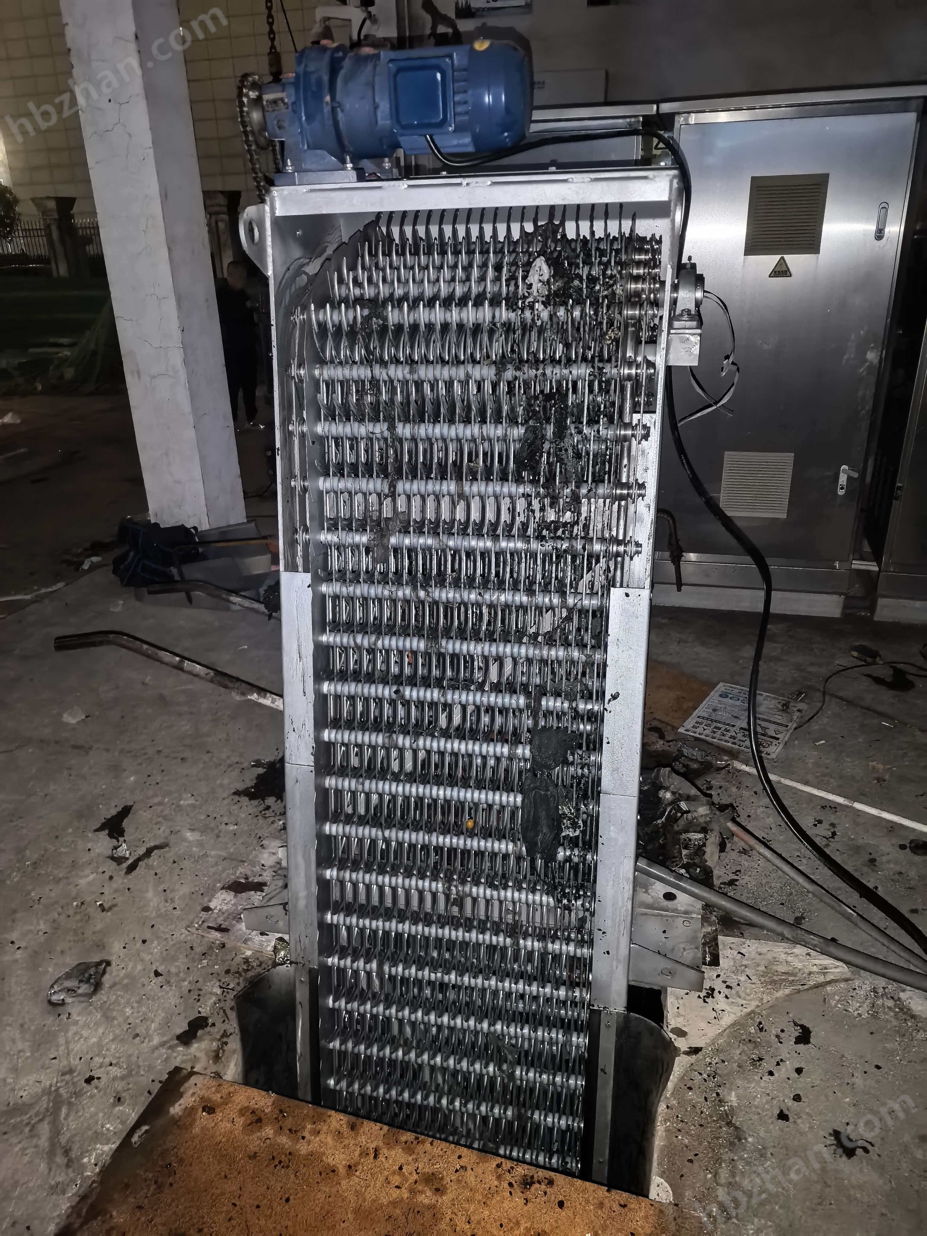 該設備是由ABS工程塑料、尼龍或不銹鋼制成的特殊耙齒,按一定的排列次序在耙齒軸上形成封閉式耙齒鏈,其下部安裝在進渠水體中。當傳動系統(tǒng)帶動鏈輪作勻速定向旋轉時,整個耙齒便自下而上運動,并攜帶固體雜物從液體中分離出來,液體則通過耙齒的柵隙流過,整個工作狀態(tài)連續(xù)進行。
