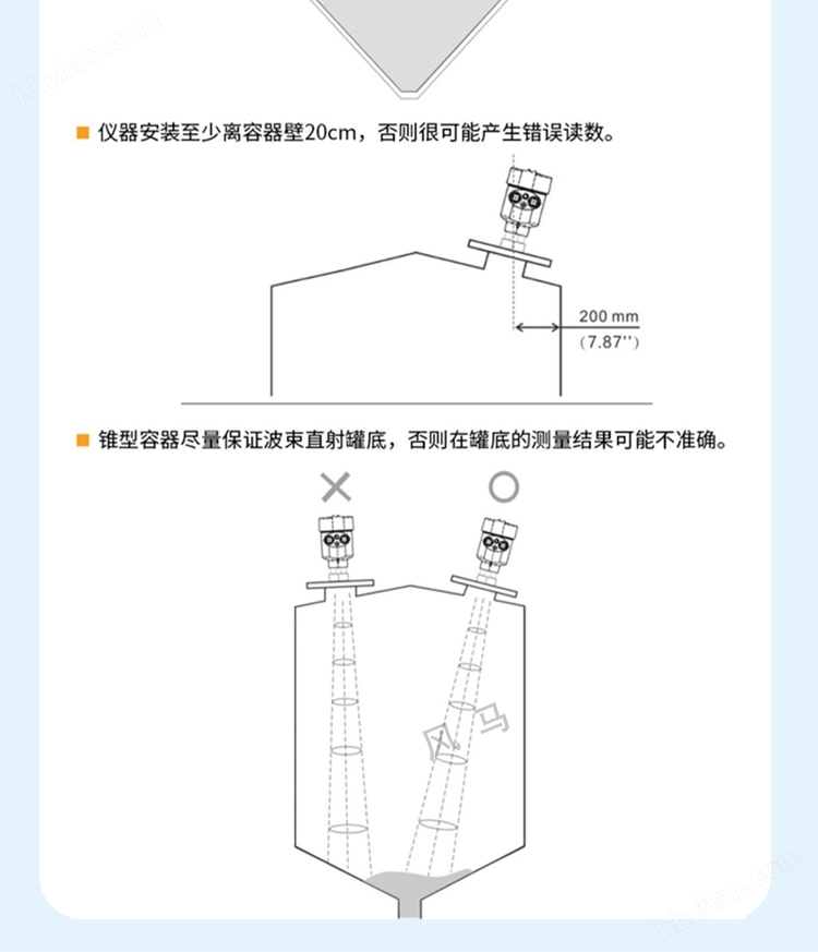 雷達(dá)液位計(jì)發(fā)射能量很低的極短的微波脈沖通過天線系統(tǒng)發(fā)射并接收。雷達(dá)波以光速運(yùn)行。運(yùn)行時(shí)間可以通過電子部件被轉(zhuǎn)換成物位信號(hào)。一種特殊的時(shí)間延伸方法可以確保極短時(shí)間內(nèi)穩(wěn)定和精確的測(cè)量。即使工況比較復(fù)雜的情況下,存在虛假回波,用新的微處理技術(shù)和調(diào)試軟件也可以準(zhǔn)確的分析出物位的回波。天線接收反射的微波脈沖并將其傳輸給電子線路,微處理器對(duì)此信號(hào)進(jìn)行處理,識(shí)別出微脈沖在物料表面所產(chǎn)生的回波。正確的回波信號(hào)識(shí)別由智能軟件完成,精度可達(dá)到毫米級(jí)距離物料表面的距離D與脈沖的時(shí)間行程T成正比 智能雷達(dá)物位計(jì)適用于對(duì)液體、漿料及顆粒料的物位進(jìn)行非接觸式連續(xù)測(cè)量,適用于溫度、壓力變化大;有惰性氣體及揮發(fā)存在的場(chǎng)合。采用微波脈沖的測(cè)量方法,并可在工業(yè)頻率波段范圍內(nèi)正常工作。波束能量較低,可安裝于各種金屬、非金屬容器或管道內(nèi),對(duì)人體及環(huán)境均無傷害。是依據(jù)時(shí)域反射原理(TDR)為基礎(chǔ)的雷達(dá)液位計(jì),雷達(dá)液位計(jì)的部分脈沖被反射形成回波并沿相同路徑返但是考慮到腐蝕及粘附的影響,測(cè)量范圍的終值應(yīng)距離天線頂端至少100mm。對(duì)于過溢保護(hù),可定義一段雷達(dá)液位計(jì)安全距離附加在盲區(qū)上。最小測(cè)量范圍與天線有關(guān)。隨濃度不同,泡沫既可以吸收微波,又可以將其反射,但在一定的條件下是可以進(jìn)行測(cè)量的?;氐矫}沖發(fā)射裝置。雷達(dá)液位計(jì)可以測(cè)量液體、固體介質(zhì)比如:原油、漿料、原煤、粉煤、揮發(fā)性液體等
