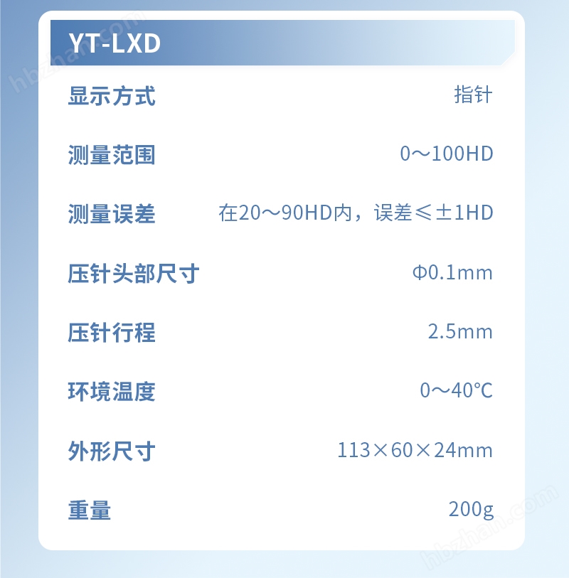 | 測量誤差 | 在20~90HA內(nèi),誤差≤±1HA |