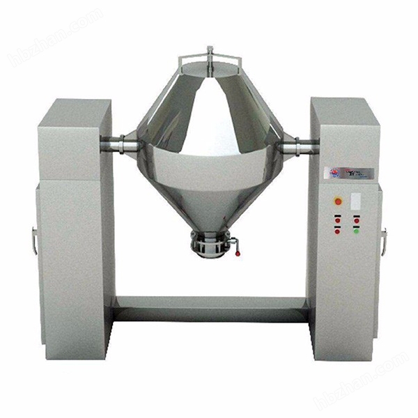 本機(jī)將粉末或粒狀物料通過(guò)真空輸送或人工加料到雙錐容器中,隨著容器的不斷旋轉(zhuǎn),物料在容器中進(jìn)行復(fù)雜的撞擊運(yùn)動(dòng),達(dá)到均勻的混合。