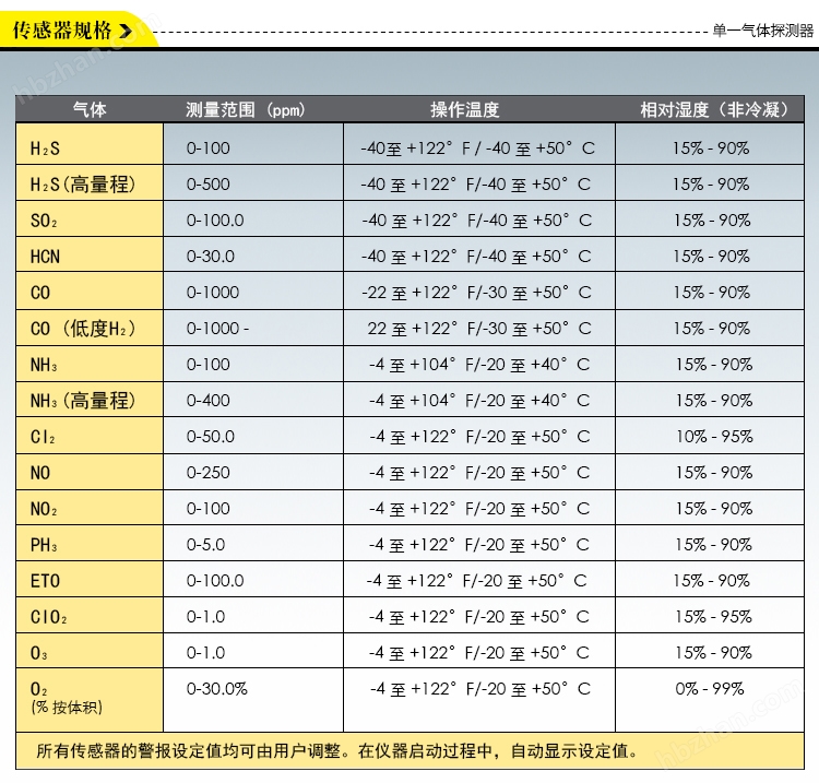 ◆其它報警:低電池電量;關(guān)閉警告;傳感器故障,超量程