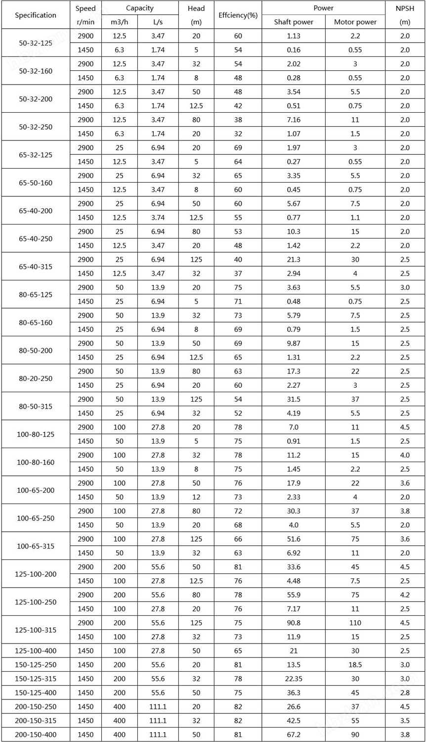 轉(zhuǎn)速: 2900-1450rpm 進出口直徑:50-200mm 流量:6.3-400m3/h