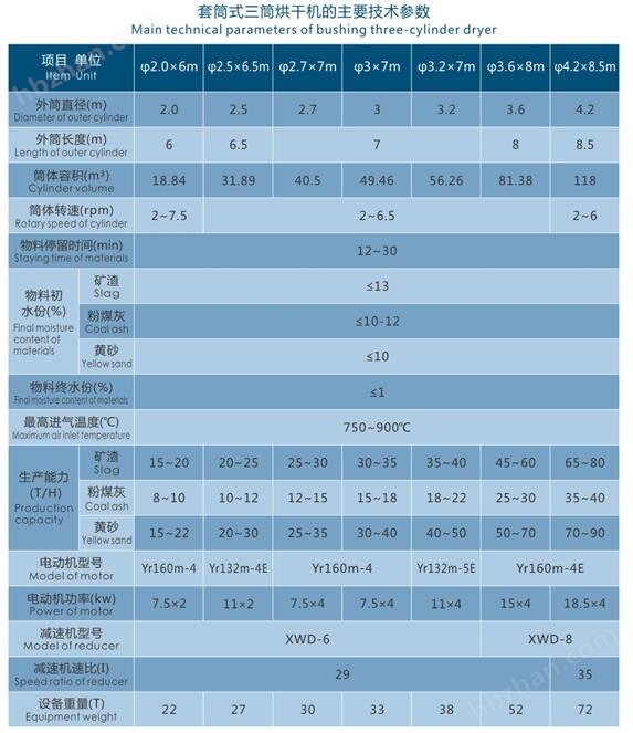 套筒式三筒烘干機具有結構緊湊,占地面積少,是相同產(chǎn)量單筒烘干機占地面積的二分之一,工作可靠、能耗低、熱效率高。物料烘干效果好,容易實現(xiàn)自動化控制,操作人員少等特點。