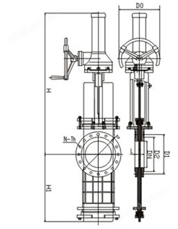 一、傘齒輪穿透式插板閥主要外形及連接尺寸(mm)