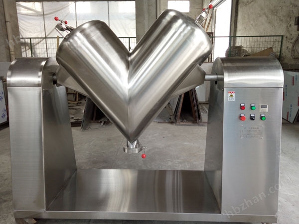 V型混合機(jī)是一種新型、高效、高精度的混合設(shè)備,它適用于化工、食品、醫(yī)藥、飼料、陶瓷、冶金等行業(yè)的粉料或顆料狀物料的混和。該機(jī)結(jié)構(gòu)合理、簡單、操作密閉,進(jìn)出料方便,(人工或真空加料)筒體采用不銹鋼材料制作便于清洗,是企業(yè)的基礎(chǔ)設(shè)備之一。該機(jī)自轉(zhuǎn)均有一套電機(jī)及擺線針輪減速機(jī)來完成,混合速度快,對比重懸殊,混配比較大的物料混合更為適合。本機(jī)物料接觸部分均為不銹鋼制造。