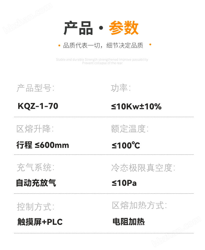 二、區(qū)熔爐KQZ-1-70對(duì)低熔點(diǎn)金屬材料的熔化提純 主要技術(shù)參數(shù)