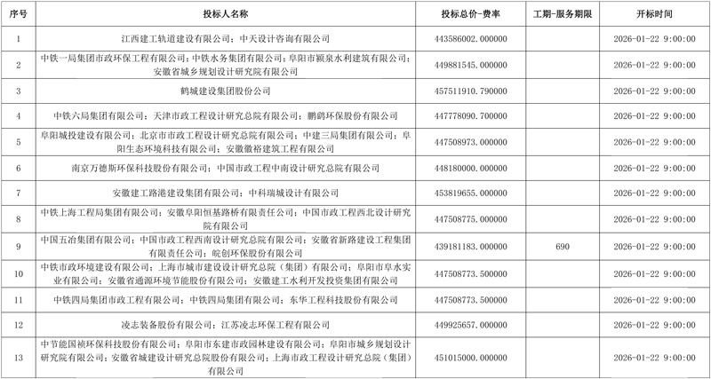 開(kāi)標(biāo)記錄顯示,共有13個(gè)聯(lián)合體參與投標(biāo),詳情如下: