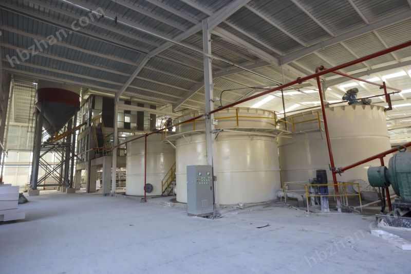 加氣混凝土砌塊生產線的原料進廠后,水泥由罐車進廠后直接輸送至水泥倉內儲存待用。砂子經過破碎、球磨連續(xù)破碎成粒度≤25mm 的顆粒。石灰經調速皮帶秤按一定比例給料,進入球磨機內進行混合磨細,當混合料細度達到 3500-4000cm2/g 后,經斗提送入兩個膠結倉中儲存。原料處理后進行料漿的調配步驟,加氣混凝土砌塊生產線在生產過程中需要經常檢測料漿稠稀度,以往都采用人工在檢測,數據不準確。新型加氣混凝土砌塊生產線為了提升設備自動化程度,設計了擴散度檢測調配系統(tǒng),可以一鍵自動檢測漿稠稀度,減少人力支出,增加數據準確性和一致性。數據可直接上傳中控室,