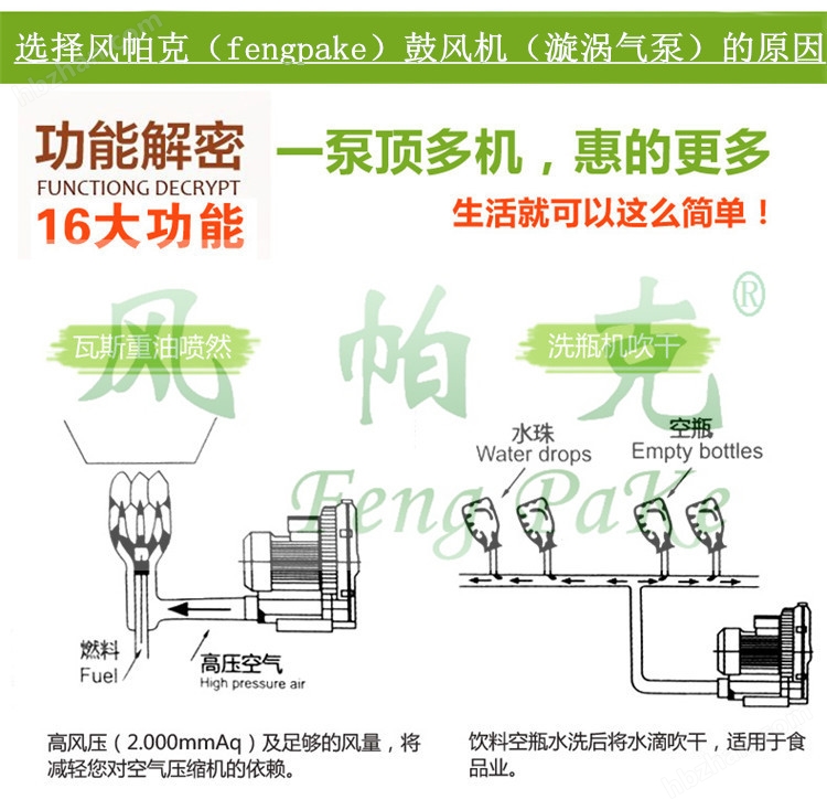 常規(guī)使用范圍:集塵系統(tǒng),水處理設(shè)備曝氣,氣體輸送,洗瓶機(jī)吹干,干燥用空氣刀,養(yǎng)殖池的氧氣補(bǔ)給,顆粒體輸送,洗凈后吹干,網(wǎng)版印刷機(jī)吸著,工業(yè)吸塵,氣動(dòng)搬運(yùn), 包裝機(jī)械設(shè)備,印刷機(jī)械設(shè)備,食品機(jī)械設(shè)備,印染機(jī)械設(shè)備,工業(yè)機(jī)器人,數(shù)控機(jī)床,環(huán)保工程,塑料機(jī)械,倉(cāng)儲(chǔ)物流,汽車制造,環(huán)境機(jī)械,熱風(fēng)發(fā)生機(jī),木工機(jī)械,機(jī)械冷卻,焚化爐,干燥機(jī),集塵機(jī),燃燒機(jī),粉粒體輸送,污水處理曝氣,焊接廢氣吸取,織布吸絲機(jī),豆腐機(jī)械等。