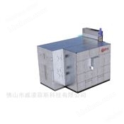 被撒料盤和大風(fēng)葉兩次分選后的物料(d<150μm)繼續(xù)上升進(jìn)入分級區(qū):平面渦流分級區(qū)。含塵氣流在旋轉(zhuǎn)的籠形轉(zhuǎn)子形成的強(qiáng)烈而穩(wěn)定的平面渦流作用下,使不符合成品要求的粗粉進(jìn)一步被精確選出,因粗顆粒產(chǎn)生的慣性離心力要大于渦流的向心吸力,粗顆粒被拋向周圍的立式導(dǎo)向葉片,撞擊后失去動(dòng)能,落到中粗粉錐中,經(jīng)中粗粉鎖風(fēng)閥排除。符合要求的細(xì)粉(d<60mm)穿過籠子進(jìn)入其內(nèi)部,隨循環(huán)風(fēng)進(jìn)入布置在選粉室四周的分離器中,被收集形成成品細(xì)粉。高效回轉(zhuǎn)烘干機(jī)鹽城科飛