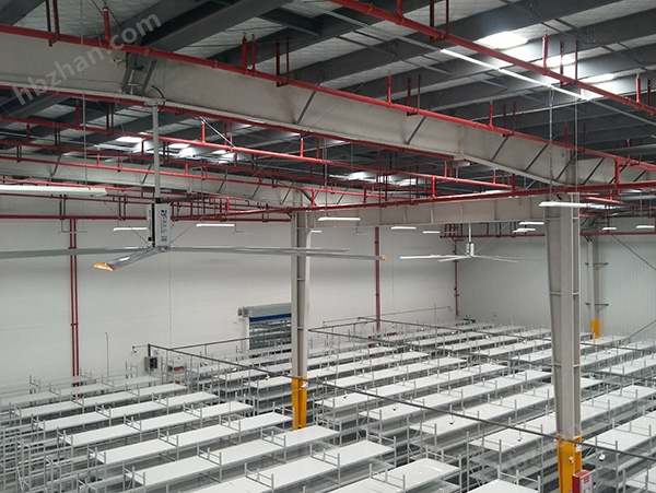 1、覆蓋面廣:超大直徑(7.3米)、低轉(zhuǎn)速,工業(yè)吊扇大范圍內(nèi)促使空氣有序流動,每臺風(fēng)扇的有效近似覆蓋面積超過1000平米以上;