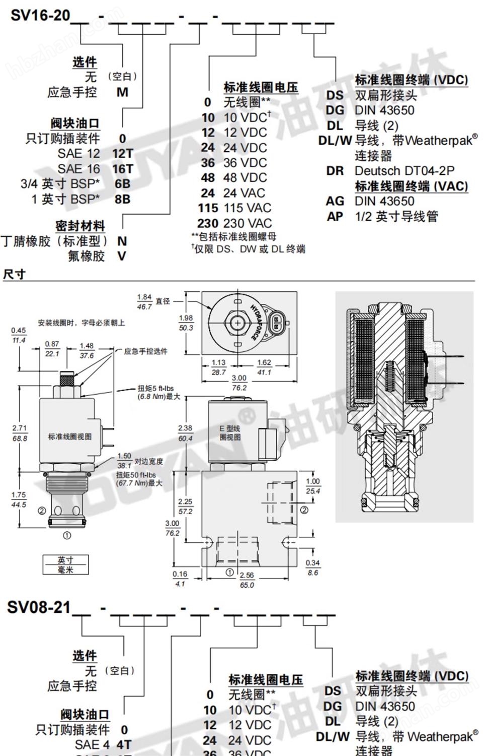 SV08/10/12/16-20/21/22/23,V2068,V3068,V6068,V8068,單雙向常開常閉插裝式電磁閥