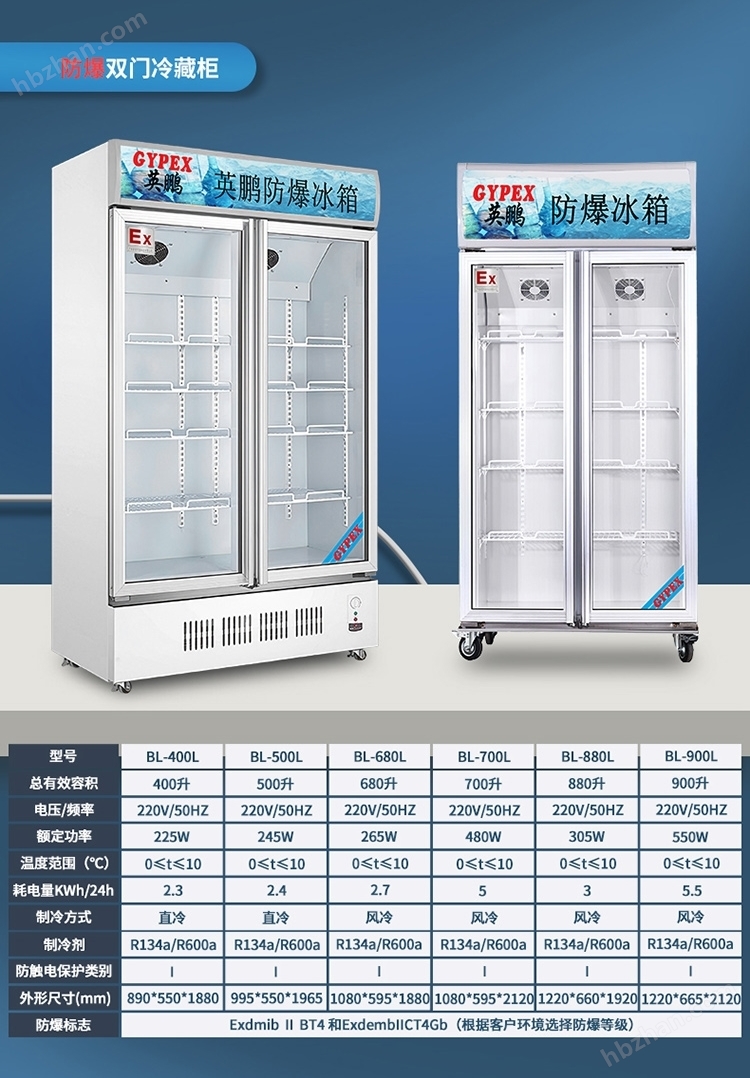 英鵬防爆冰柜-立式雙門 品牌:英鵬 型號(hào):BL-200LC400L 500L 680L 700L 880L 900L