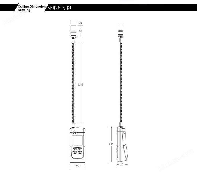 ◆ 外形尺寸:140mm(L)×60mm(W)×43mm(H)