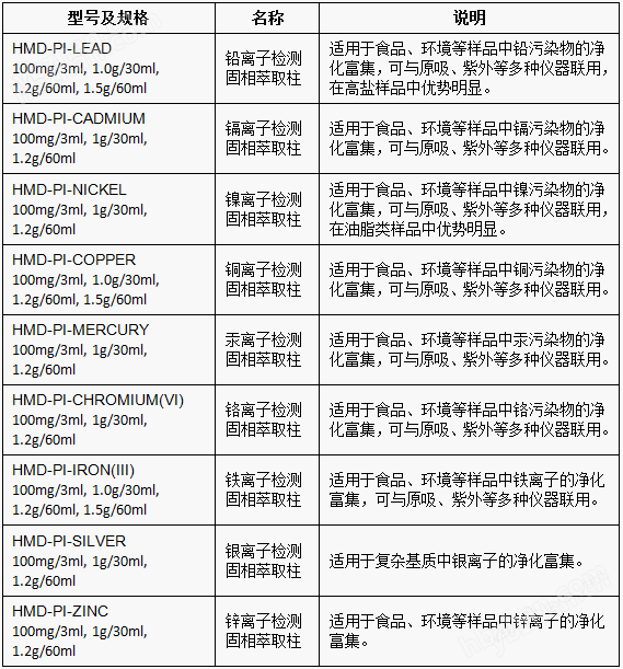 鉛、鎘等重金屬離子印跡材料型號說明
