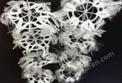 組合填料是在軟性填料和半軟性填料的基礎(chǔ)上發(fā)展而成的,它兼有兩者的優(yōu)點(diǎn)。其結(jié)構(gòu)是將塑料圓片壓扣改成雙圈大塑料環(huán),將醛化纖維或滌 綸絲壓在環(huán)的環(huán)圈上,使纖維束均勻分布;內(nèi)圈是雪花狀塑料枝條,既能掛膜,又能有效切割氣泡,提高氧的轉(zhuǎn)移速率和利用率。使水氣生物膜得到充分交換,使水中的有機(jī)物得到高效處理。