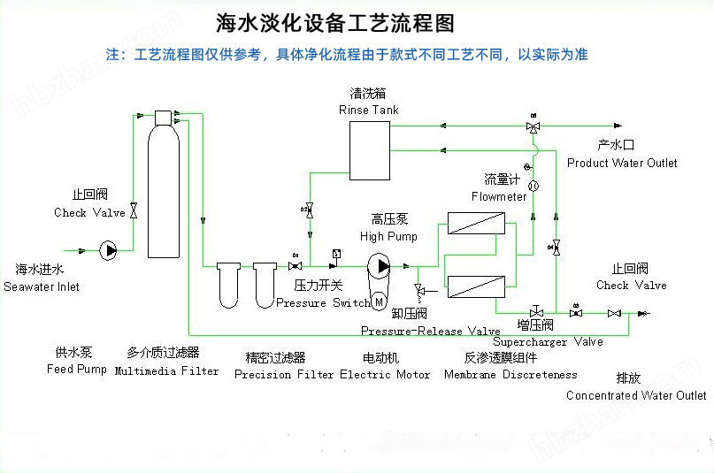 1、反滲透膜:采用美國(guó)海德能、陶氏海水膜