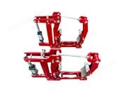 制動(dòng)蹄由摩擦蹄片與蹄筋焊接組成,材料厚度在6-8mm,通過定位孔塞焊把蹄片跟蹄筋焊接在一起