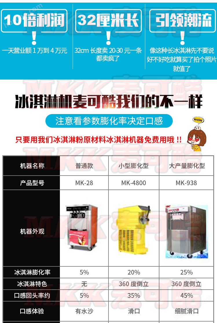 冰淇淋機(jī)麥可酷我們的不一樣,注意看參數(shù)膨化率決定口感