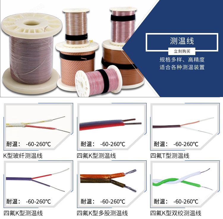 熱電偶用補償導(dǎo)線的作用是來延伸熱電極即移動熱電偶的冷端,與顯示儀表聯(lián)接構(gòu)成測溫系統(tǒng)。本產(chǎn)品采用GB/T 4989-94《熱電偶用補償導(dǎo)線》 標準(等效采用IEC584-3《熱電偶第三部分—補償導(dǎo)線》國際標準),絕緣層和護層選用進口優(yōu)質(zhì)氟塑料,并采用整體連續(xù)擠出新工藝,使該產(chǎn)品具有優(yōu)良的耐酸,堿、耐磨和不燃延之性能,可浸入油水中長期使用。使用溫度—60—205—260℃,屬于當代水平。產(chǎn)品主要應(yīng)用于各種測溫裝置,已被廣泛用于石油、化工、冶金、電力等部門。