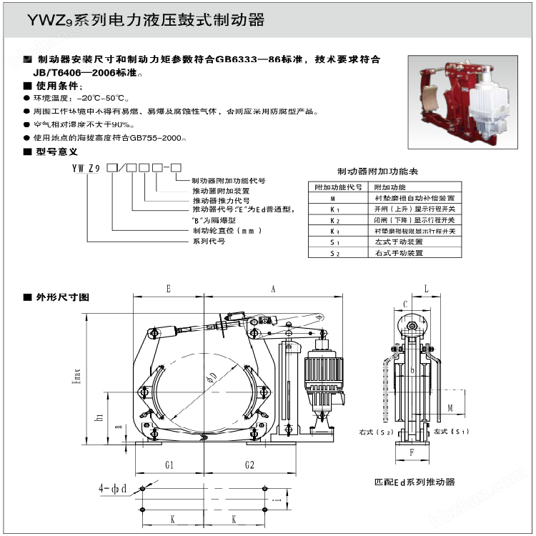 YWZ 型制動(dòng)器互換、通用性制動(dòng)器、互換性制動(dòng)部件、同規(guī)格制動(dòng)器替換。